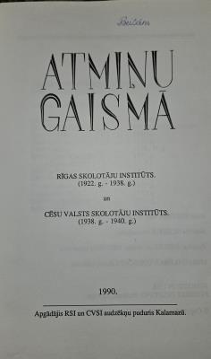 Atmiņu gaismā.Rīgas skolotāju institūts. Cēsu valsts skolotāju institūts