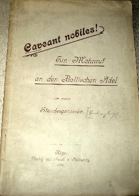 Caveant nobiles! : ein Mahnruf an den Baltischen Adel