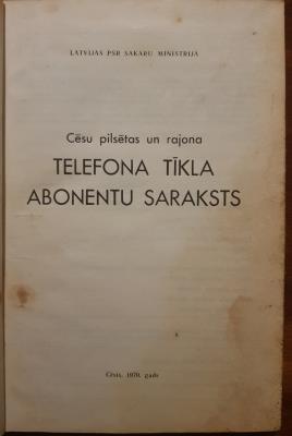 Cēsu pilsētas un rajona telefona tīkla abonentu saraksts 1970