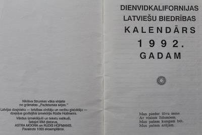 Dienvidkalifornijas latviešu b-bas kalendars 1992gadam.