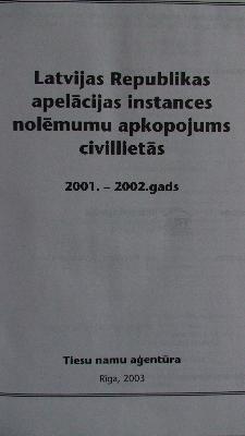 Latv.Republikas apelācijas instances nolēmumu apkopojums civillietās