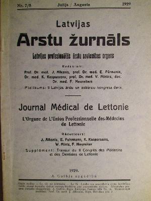 Latvijas Ārstu Žurnāls 7-8/1929