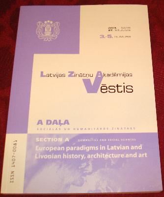 Latvijas Zinātņu Akadēmijas Vēstis "A" daļa (sociālās un humanitārās zinātnes), 2013, Nr.3/5 : Eiropas paradigmas Livonijas un Latvijas vēsturē, arhitektūrā, mākslā