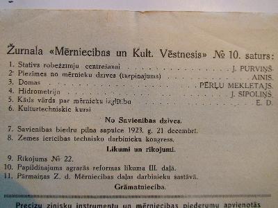 Mērniecības un Kultūrtehnikas Vēstnesis Nr.10/1923