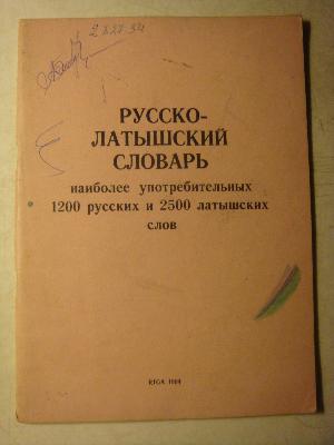 Русско-Латышский Словарь - Наиболее Употребительных 1200 Русских И 2500 Латышских