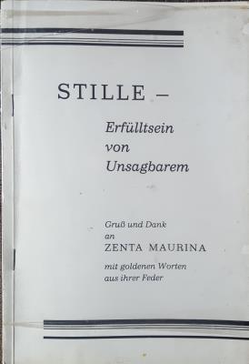 Stille - Erfülltsein von Unsagbarem. Gruss und Dank an Zenta Maurina , mit goldenen Worten aus ihrer Feder