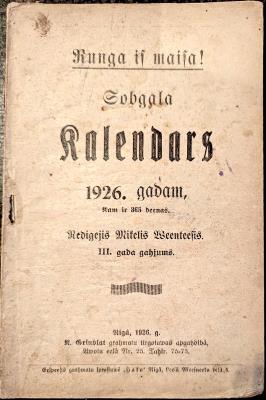 Zobgala kalendārs 1926. gadam